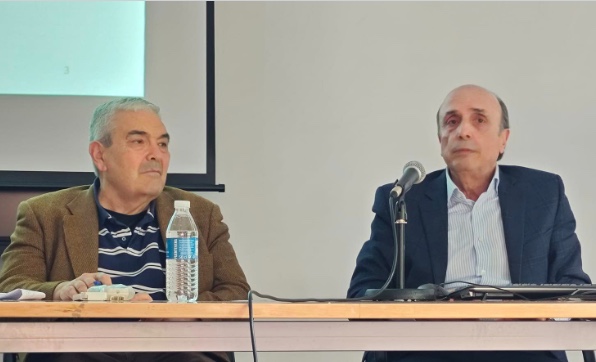 El presidente de la Asociación Getafe-Madrid para la UNESCO presenta a los socios numerarios Don José Ramón Murillo Gómez y Esteban Ibarra Blanco que imparten la conferencia diversidad, convivencia, globalización y migraciones.